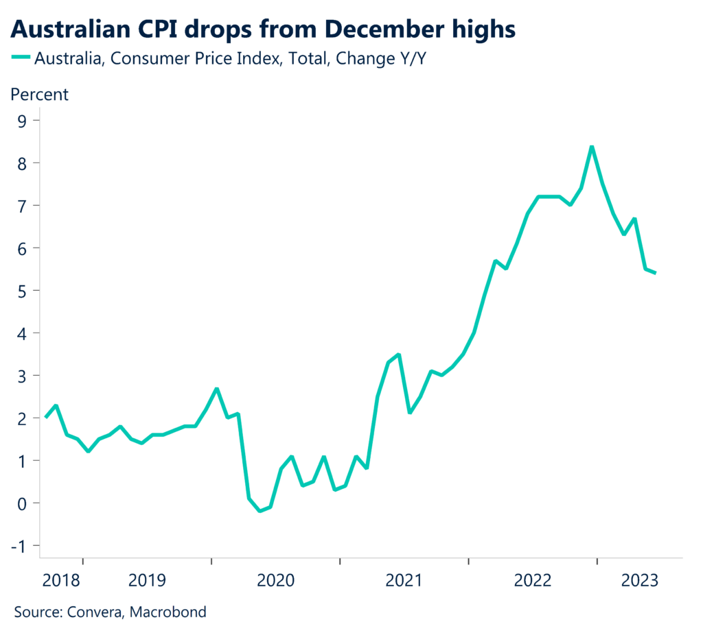 Australian inflation has been falling, with the new monthly series down from 8.4% in December to 5.4% in June, but the rate remains well above the Reserve Bank of Australia’s 2-3% target.