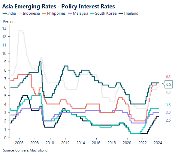 In line with its guideline that the policy rate is at its neutral level and “appropriate for supporting long-term sustainable growth,” we anticipate the Bank of Thailand (BOT) will unanimously decide to keep its policy rate at 2.5%.