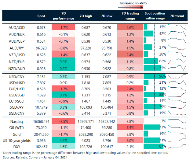 Table: seven-day rolling currency trends and trading ranges