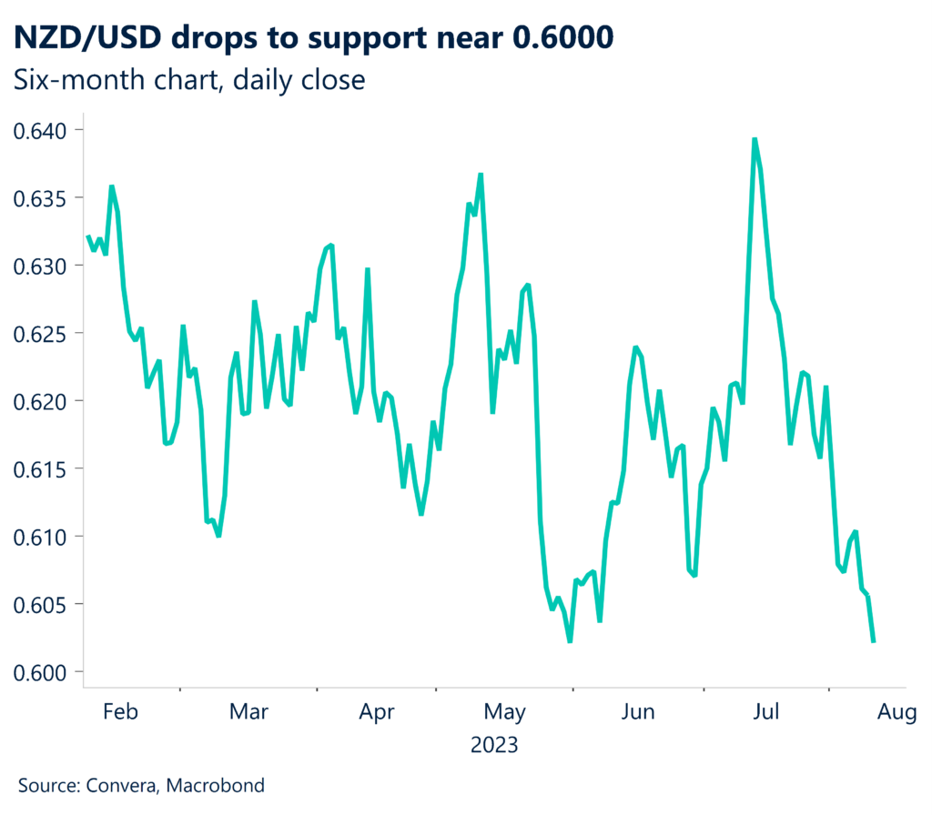 Into next week, the focus moves to New Zealand, with the Reserve Bank of New Zealand decision due. The kiwi has been particularly pressured by rising US bond yields over the last four weeks and further evidence that the RBNZ is at the end of its tightening cycle at next Wednesday’s decision might drive the NZD/USD below key support near 0.6000.