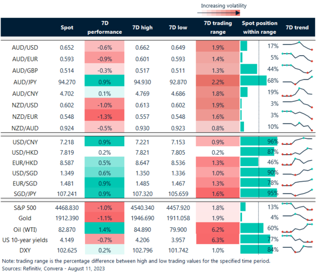 The US dollar was initially sharply lower overnight after the US’s July inflation reading came in below expectations, but rising bond yields continue to spook markets, and the greenback later rallied.