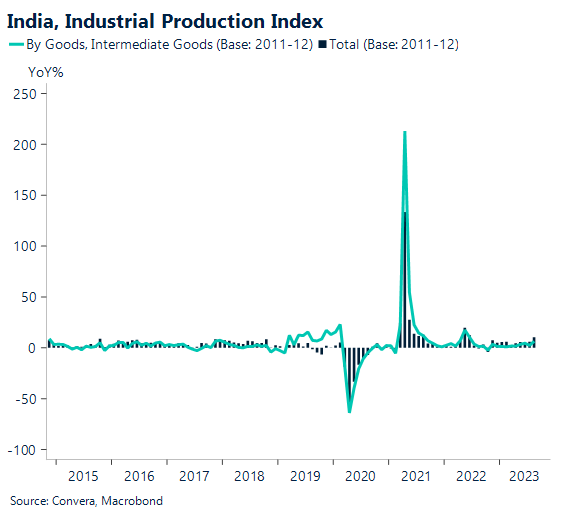 Looking ahead to today’s industrial production numbers, in addition to an easing of sequential momentum to -1.1% MoM (seasonally adjusted) from 1.4% in August, industrial output growth is expected to decelerate to 7.2% YoY in September from 10.3% in August. This is partly due to a somewhat unfavorable base effect. While the output of consumer durables is predicted to weaken, the infrastructure and capital markets—two industries linked to investments—are expected to do well.
