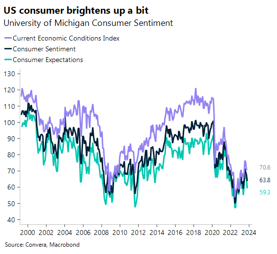 Expectations for inflation in the next year rose 1 percentage point to 4.2%, the highest level since May 2023. The below chart shows the US consumer sentiment had edged up in recent months.