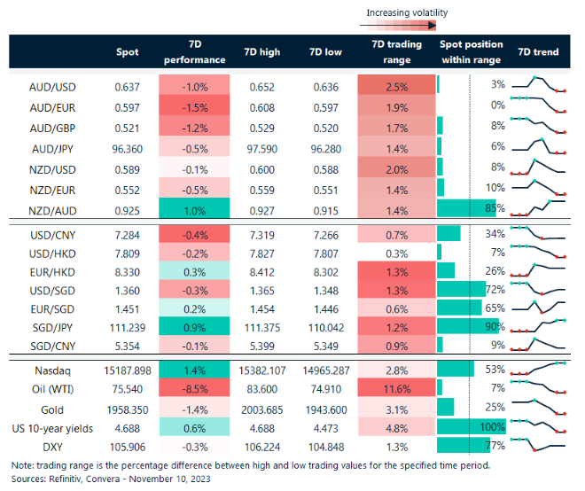Table: seven-day rolling currency trends and trading ranges
