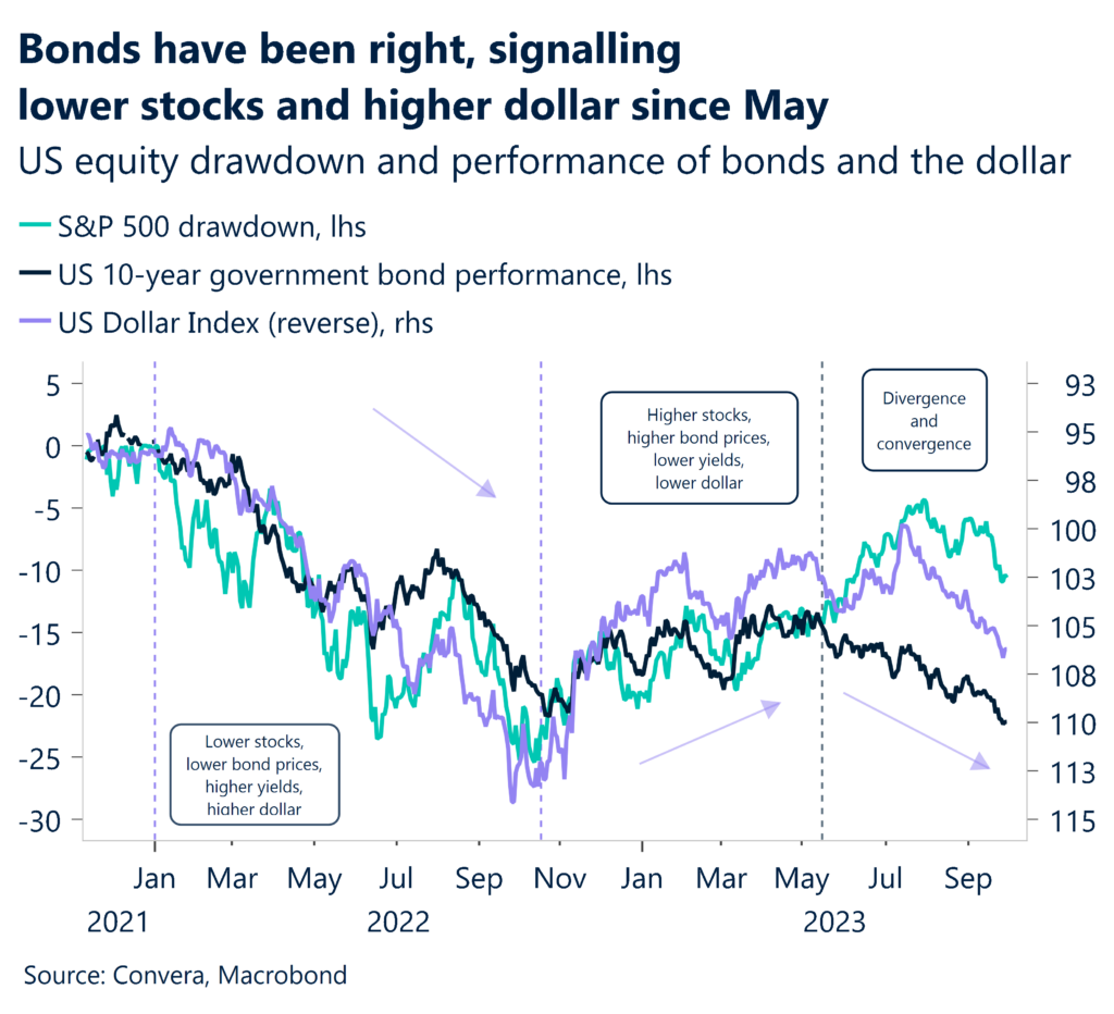 The Federal Reserve sent bond yields higher after their 21 September meeting when the central bank projected one more rate hike this year and forecast official rates at 5.10% at the end of 2024 – broadly near current levels.