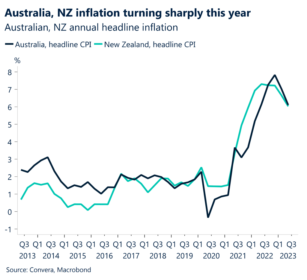 Both central banks are expected to remain on hold as inflation turns from recent highs.