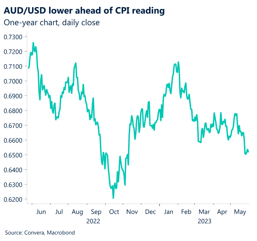 The Australian dollar was lower ahead of a critical day for the currency with the Reserve Bank of Australia’s Governor, Philip Lowe speaking today followed by the all-important monthly inflation reading.