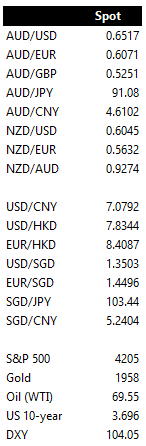 USD lower, but Aussie and NZD underperform
