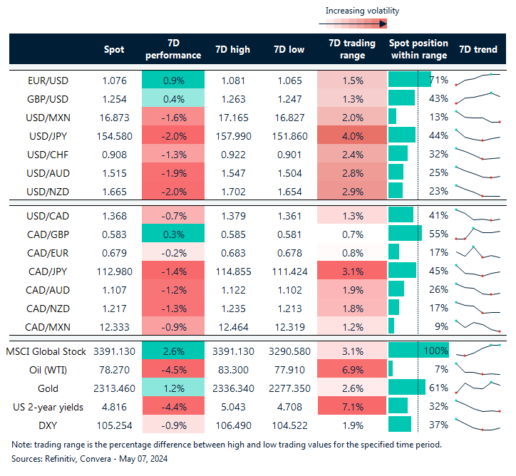 Table: 7-day currency trends and trading ranges