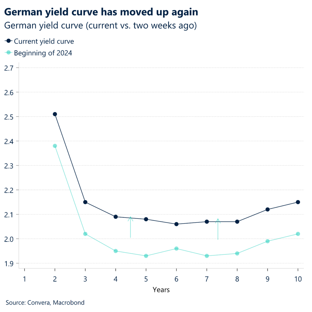 Entrenched positioning. The recent outperformance of US macro data in the form of the non-farm payrolls report and yesterday’s inflation print have made it less likely that the Federal Reserve would cut interest rates in March. While both data releases have been ambiguous and left room for interpretation, showing some pockets of continued weakness, the strong headline numbers will be enough for policy makers to push back against market pricing. Investors remain convinced of their believes and didn’t budge after yesterday’s data with six rate cuts still being priced in for 2024.