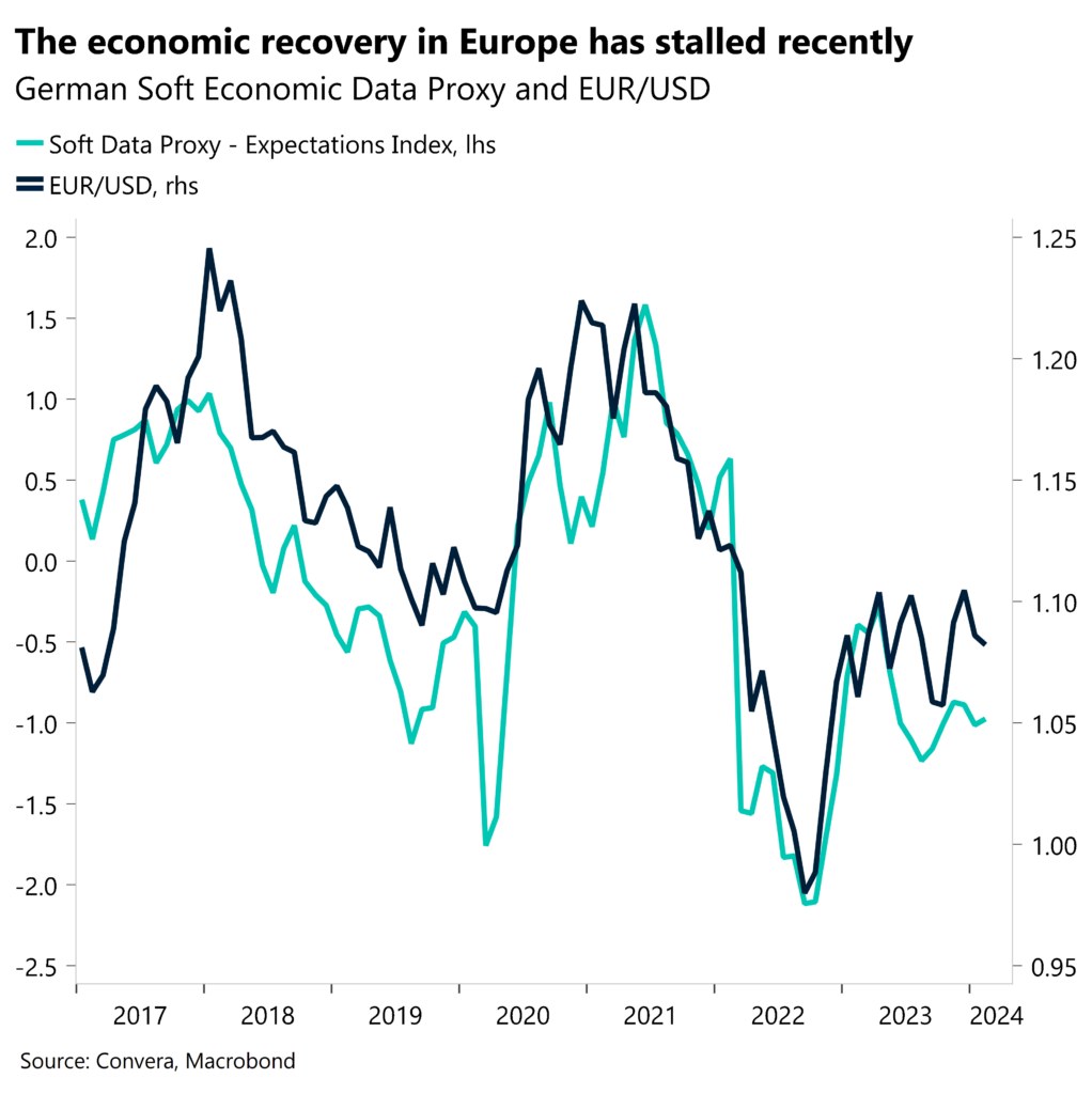 The recent data flow confirms the Fed’s cautiousness to cut before June. However, retail sales and the NFIB print show that the US economy is losing momentum.